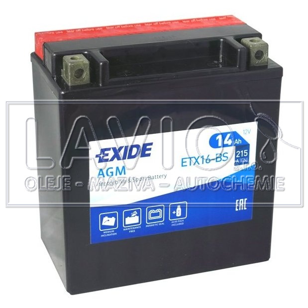 EXIDE motobaterie AGM YTX16-BS 12V/14Ah; 215A