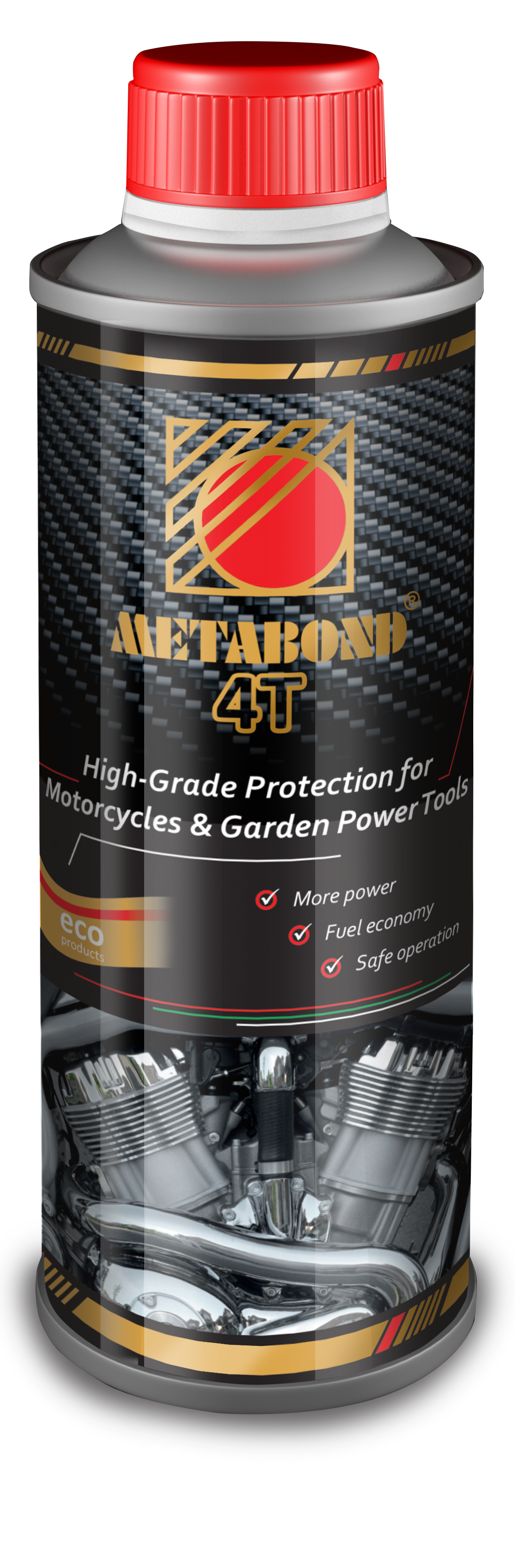 Metabond 4T Racing je nejmodernější zušlechťovač kovových povrchů bez popela určený pro čtyřtaktní motocyklové motory. Vyvinutý závodními týmy speciálně pro motocyklové motory. Výrazně snižuje tření a zlepšuje mazací schopnost motorového oleje. Je určený do nových i použitých čtyřtaktních zážehových motorů v motocyklech a čtyřkolkách. Přidává se pouze do výrobcem předepsaného motorového oleje.