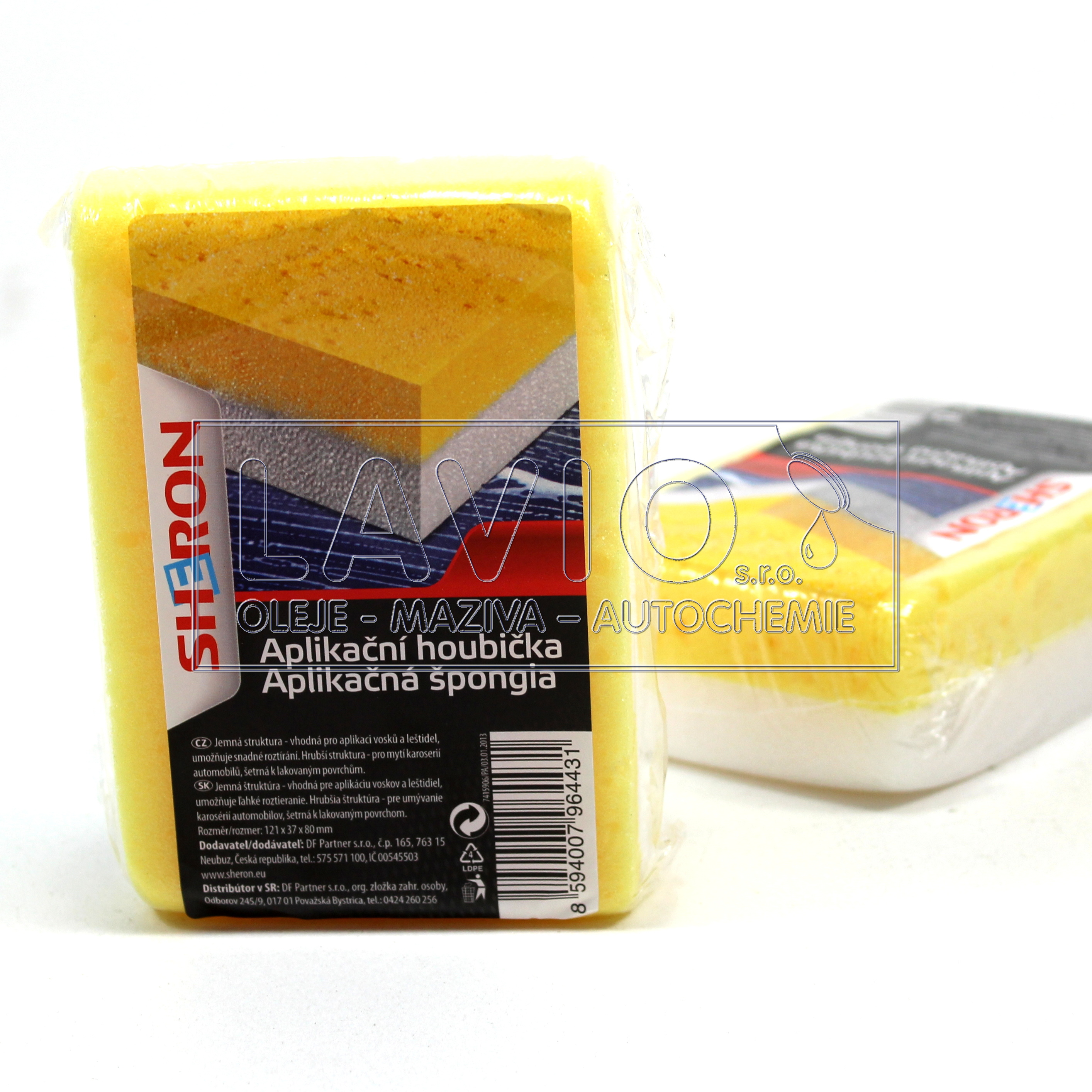 Aplikační houbička s dvěmi strukturami – jemná struktura pro nanášení vosků, leštěnek apod. a hrubá struktura pro mytí karoserií.