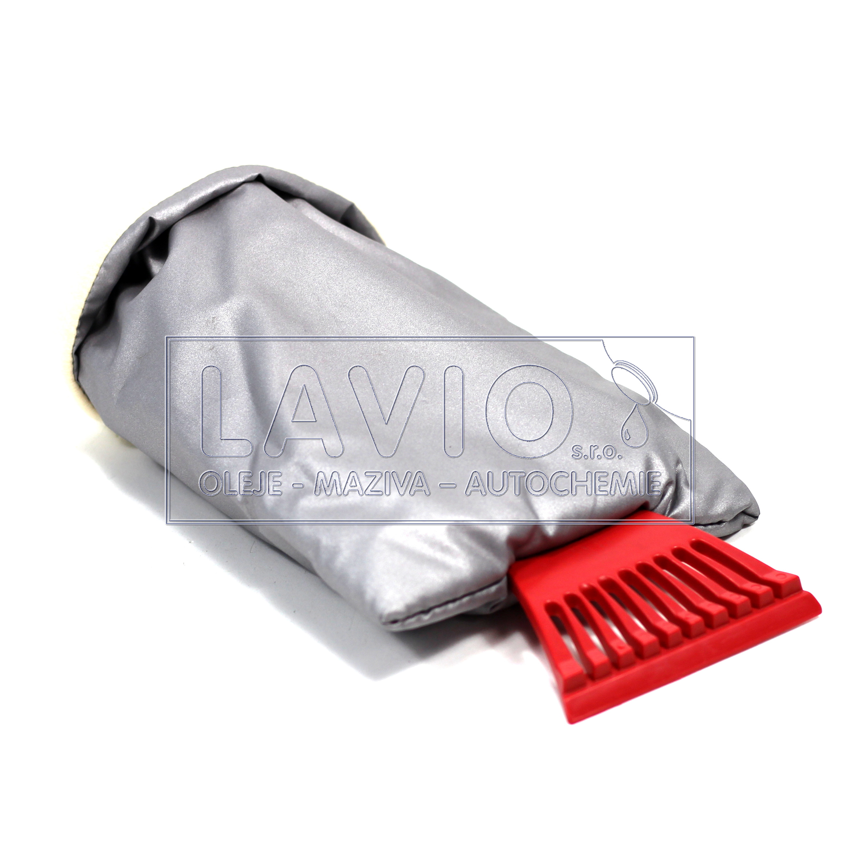 škrabka na led a sníh v ochranné teplé rukavici.