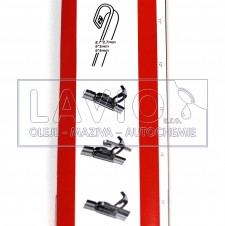• Plastovou pojistkou prostrčíte kovové raménko stěrače, důkladně ho zacvaknete do plastového držáku stěrače a po té zajistíte pojistkou zacvaknutím směrem dolů.