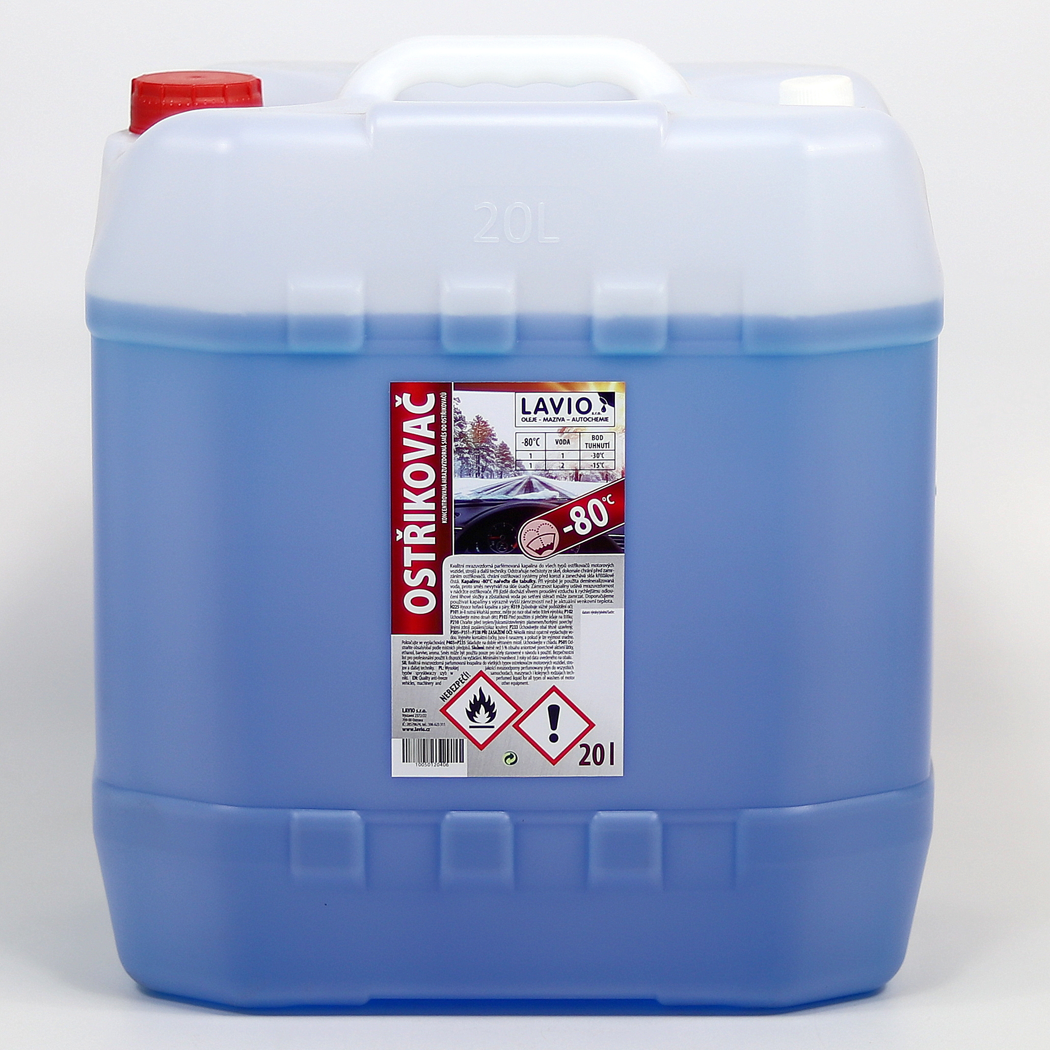 Kvalitní mrazuvzdorná parfémovaná kapalina do všech typů ostřikovačů motorových vozidel, strojů a další techniky. Odstraňuje nečistoty ze skel, dokonale chrání před zamrzáním ostřikovačů, chrání ostřikovací systémy před korozí a zanechává skla křišťálově čistá. Kapalinu –80°C nařeďte dle tabulky. Při výrobě je použita demineralizovaná voda, proto směs nevytváří na skle úsady.