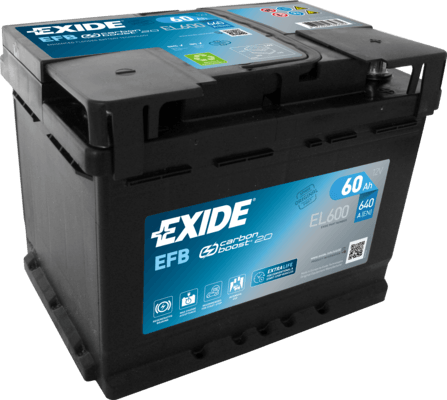 Nejnovější generace EFB baterií představuje technologii Carbon Boost 2.0. Podporuje všechna vozidla se systémem Start-Stop, i bez něj, která mají vysoké nároky na cyklický výkon. Při instalaci do automobilů se systémem Start-Stop ukazuje nová baterie Exide EFB nepřekonatelnou schopnost obnovy energie a výjimečnou dynamickou akceptaci nabíjení. Pokud je baterie instalována ve voze s konvenčním pohonem, profituje z celkově delší životnosti.