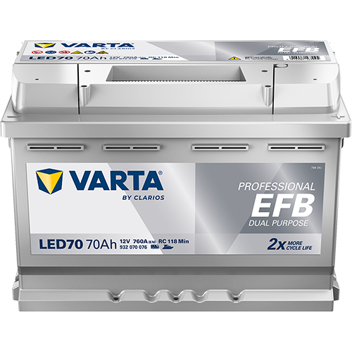 VARTA PROFESSIONAL EFB s duální technologie Dual Power – baterie je vhodná pro napájení elektrických systémů i startování (krátkodobé vysoké proudové odběry). Technologie EFB – olověná baterie založená na bázi tekutého elektrolytu; oproti standardním zaplaveným startovacím bateriím se liší zejména zesílenými mřížkami elektrod, jimiž se docílí vyšší odolnosti při cyklickém vybíjení.