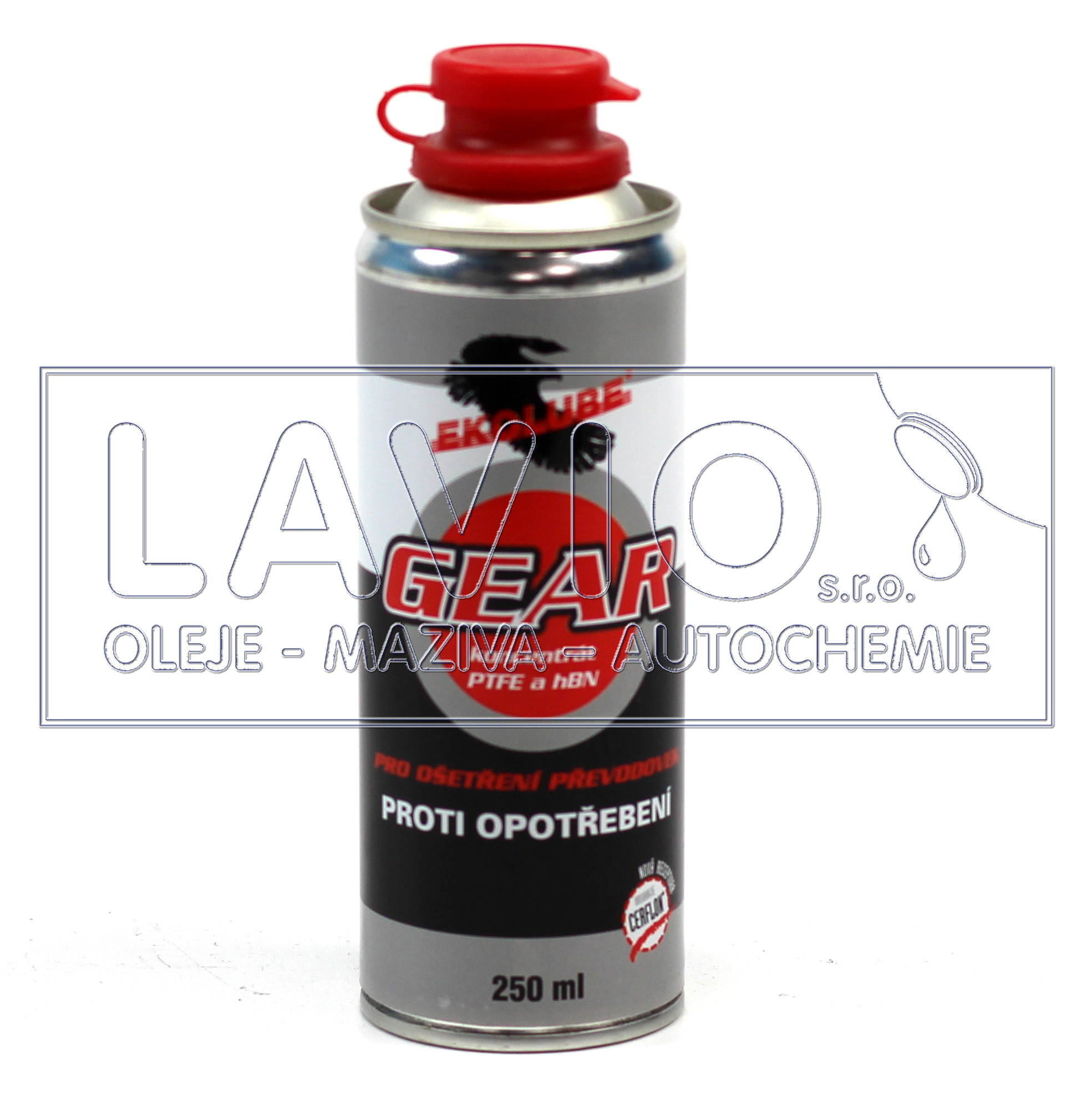 Ekolube GEAR je stabilizovaná suspenze polatetrafluoretylenu a nitridu bóru, mísitelná se všemi převodovými oleji, pro klasické převodovky. Synergický efekt těchto látek vykazuje podstatně lepší účinnost při ošetření třecích ploch než samotný Teflon. Dlouhodobě snižuje tření, opotřebení, hlučnost agregátu a únik oleje. Po aplikaci se sníží opotřebení kluzných ploch až o 70%. Doporučená koncentrace pro převodovky a diferenciály 10% Ekolube gear+ 90% převodový olej.