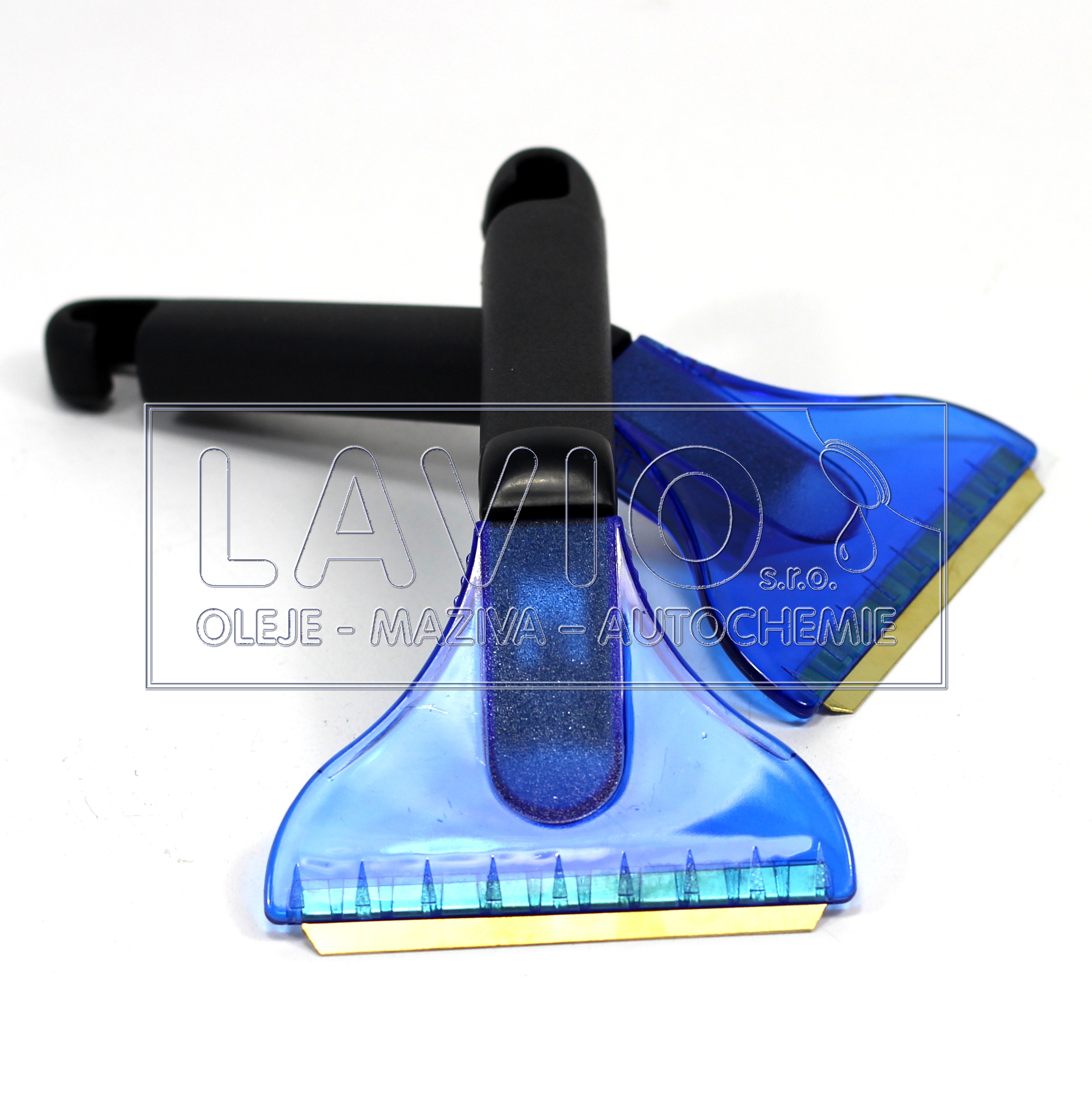 Plastová škrabka na led a sníh s kovovým břitem pro snadnější odstraňování ledu.