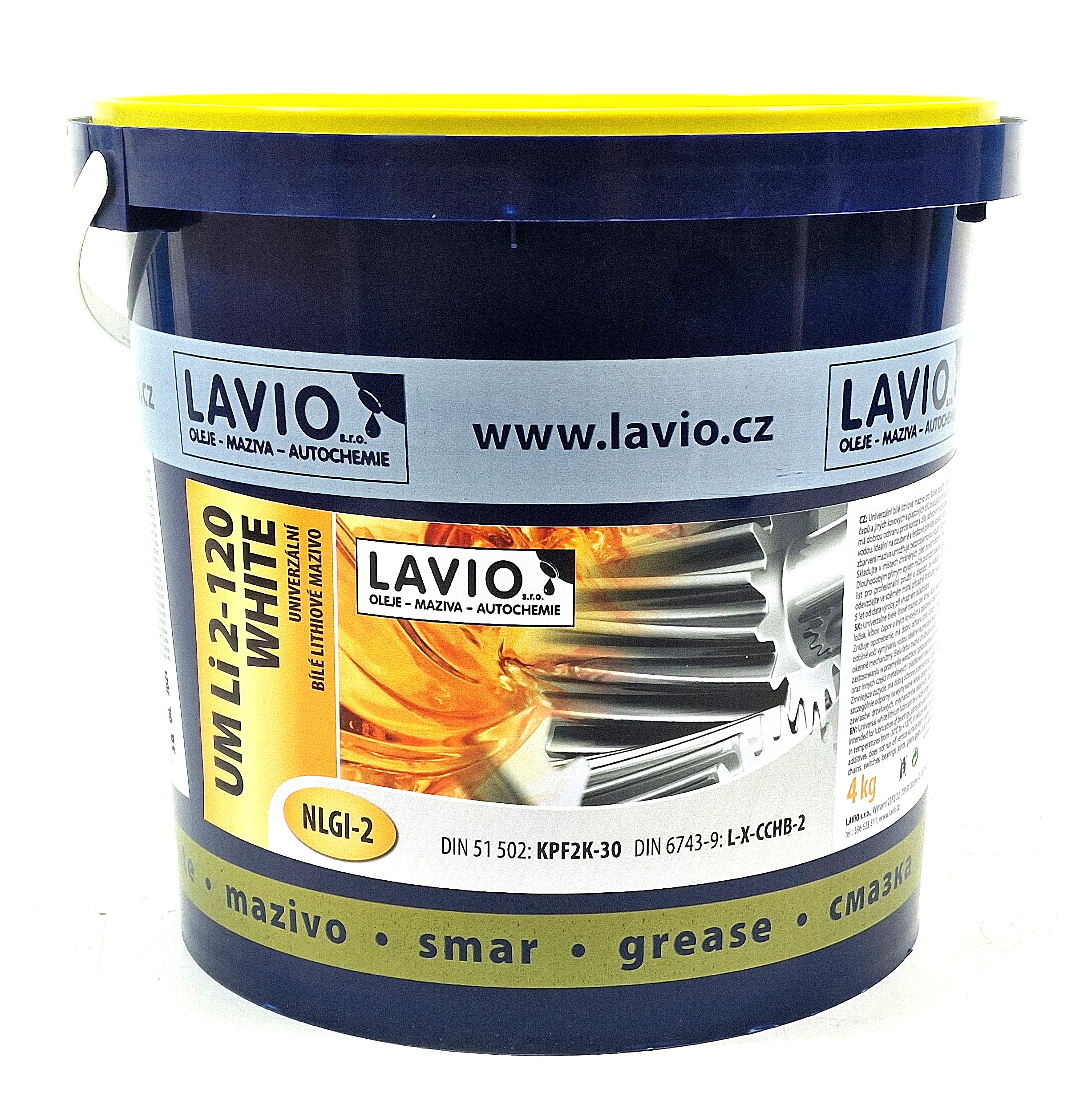 SK: Univerzálne biele lítiové mazivo pre širokú škálu priemyselných, dielenských a domácich aplikácií. Je určené na mazanie ložísk, kĺbov, čapov a iných kovových a plastových dielov pracujúcich pri bežnom zaťažení pri teplotách od –30 °C do +120 °C. Znižuje opotrebenie, má dobrú ochranu proti korózii a vďaka adhezívnym prísadám nesteká zo zvislých plôch a je obzvlášť odolný voči vymývaniu vodou. Ideálny na prevody a reťaze, spínače, ložiská, kĺby, ozubené kolesá, ozubené prevody, závesy dverí, okenné mechanizmy. Biela farba maziva umožňuje jednoduchú vizuálnu kontrolu.