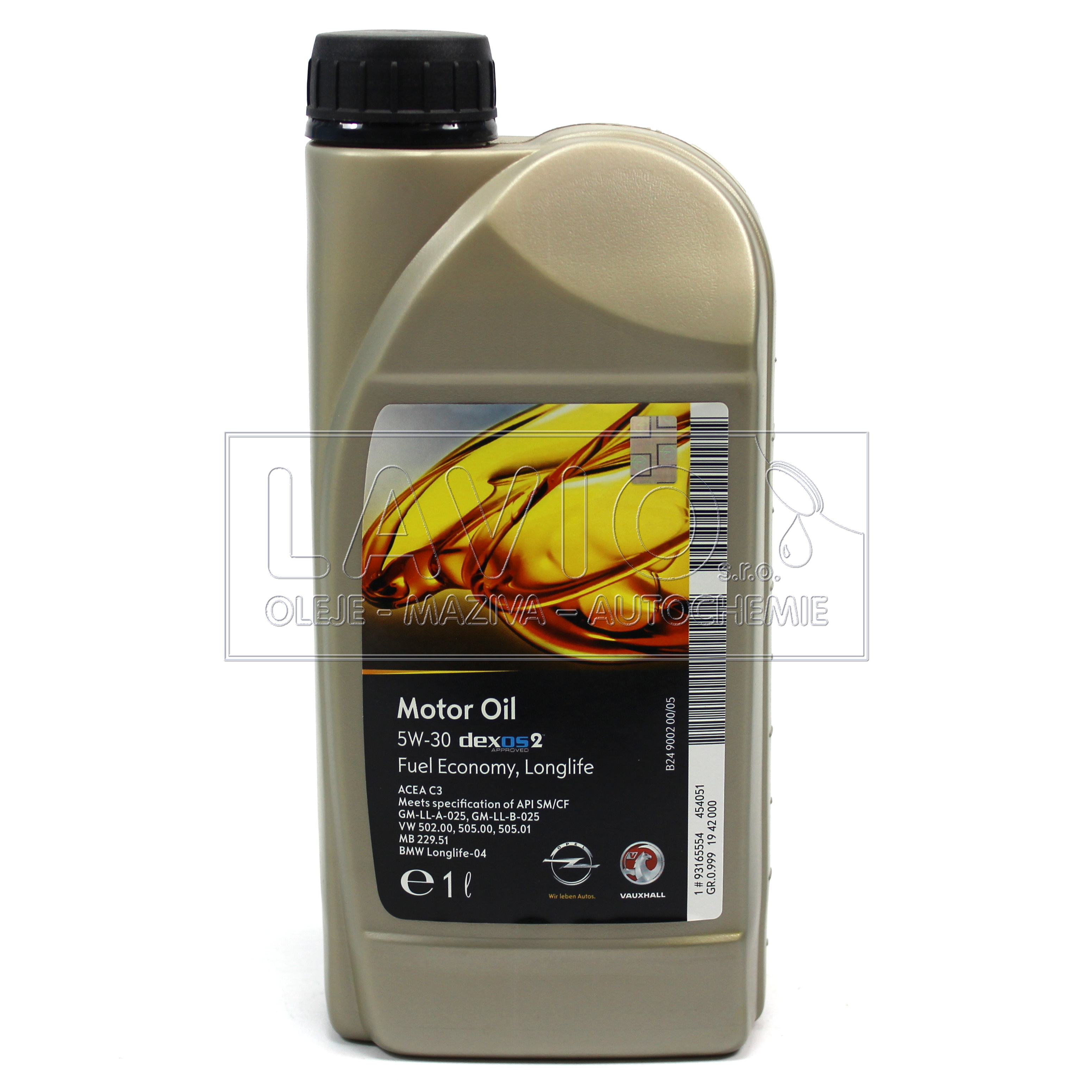 Motorový olej GM/Opel 5W-30 Dexos 2 je syntetický MidSaps motorový olej zajišťující mimořádný čisticí výkon, snížené opotřebení a celkovou ochranu motoru v kombinaci s dalším zlepšením spotřeby paliva. Vhodný pro všechny vozy s DPF, splňuje normu VW 505 01 pro vozidla se vstřikováním PD (čerpadlo-tryska). Motorový olej GM/Opel 5W-30 Dexos 2 kombinuje potřeby benzínových a naftových motorů v jedné specifikaci a je přizpůsoben potřebám Evropy.